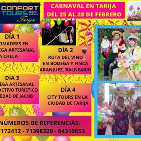 Confort Tours Tarija Abierto Gerente General: July Padilla 0.0 0 Ratings Agencias de viajes, Operadores de turismo Tarija, Bolivia 72945860 ó 77172412 Ver El Video Agregar Revisión Agregar a favoritos Compartir Compartir: Este anuncio ha caducado.